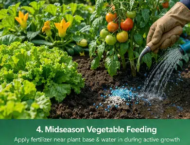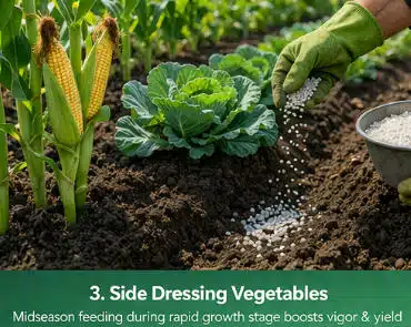 As vegetables move into rapid vegetative growth, nutrient demand rises. Oregon State Extension notes that many crops respond well to midseason feeding, and fertilizer should be applied near the base of plants and watered in. In practical terms, this is the stage when side dressing can make a visible difference in color, vigor, and overall plant performance.