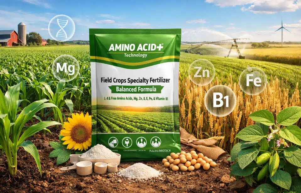 A produção moderna de culturas de campo enfrenta desafios crescentes devido ao estresse climático, desequilíbrio nutricional e instabilidade de rendimento. Para resolver esses problemas, a MASLBIOTECH apresenta o Fertilizante Especializado para Culturas de Campo – Fórmula Balanceada, uma solução cientificamente desenvolvida baseada na tecnologia proprietária “Aminoácido+”, fornecendo nutrição precisa e eficiente durante todo o ciclo de crescimento das culturas.
